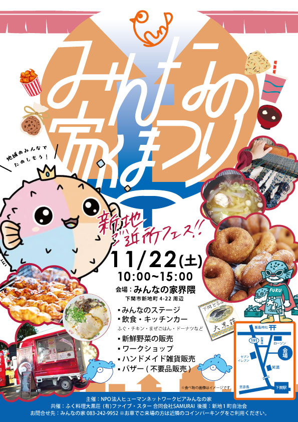11月22月の土曜日にみんなの家周辺で「みんなの家まつり 新地ご近所フェス!!」を行います。